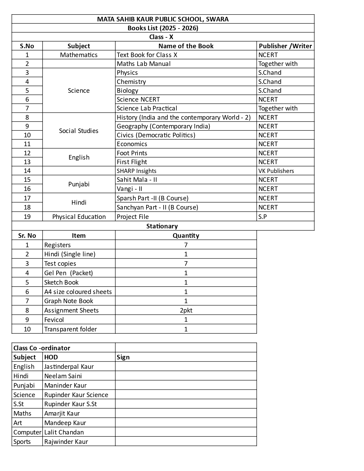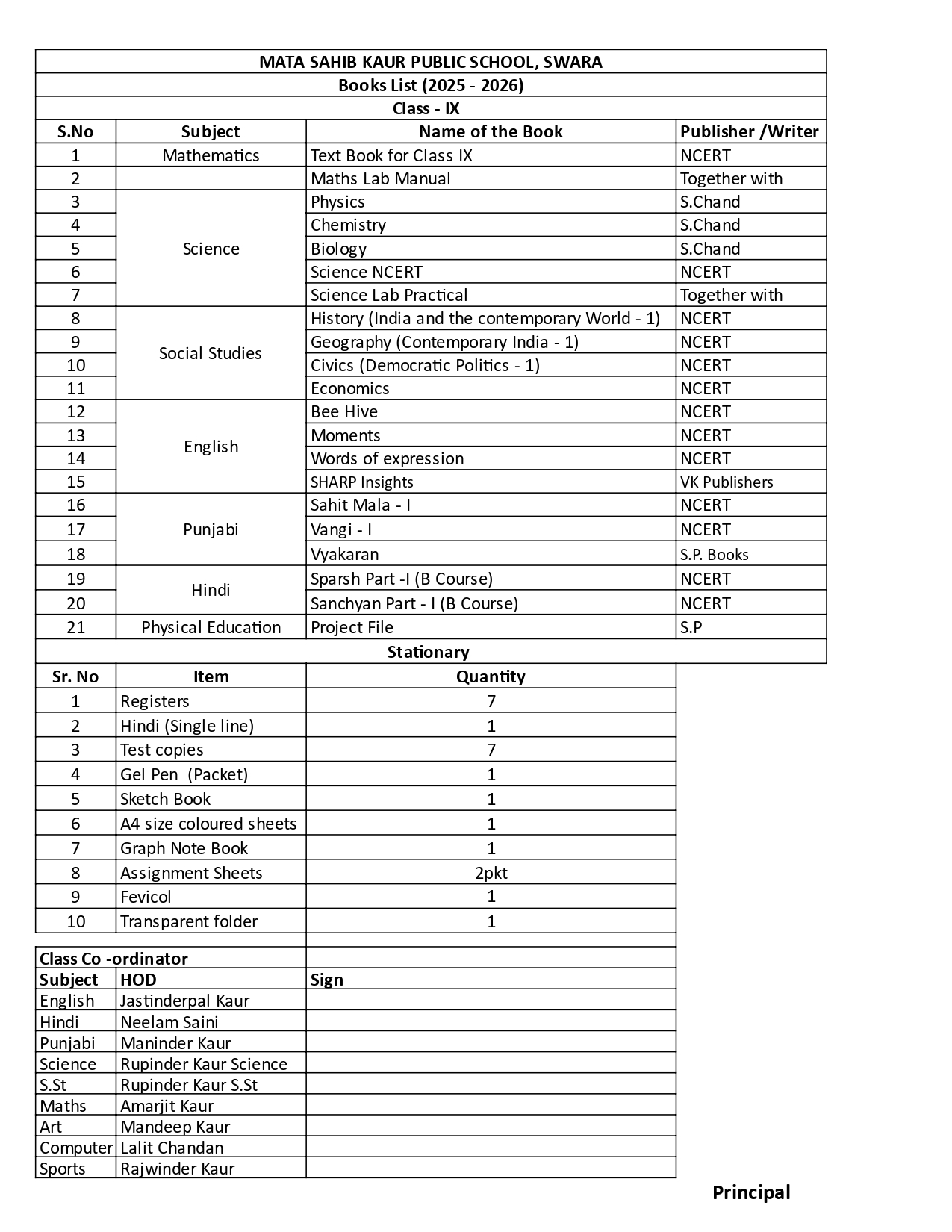 Activities- Baisakhi celebration, Mother’s Day, Independence Day Celebration, teachers day celebration, Dussehra celebration, Diwali celebration, children day, cross country race, shaheedi samagam, Assessment- 3 unit test,mid term exams, pre board & final exam