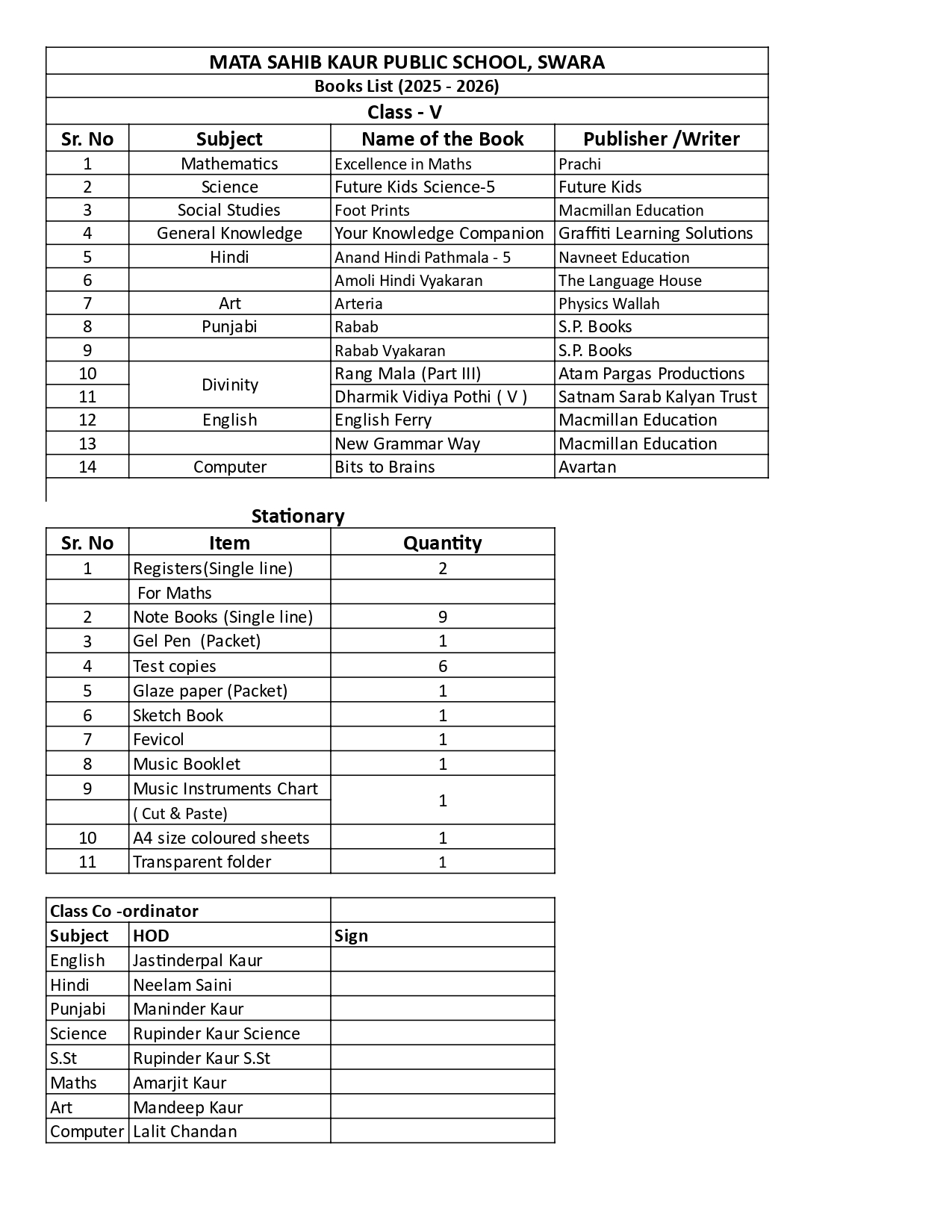 Excellence in Maths - Prachi Future Kids Science 5 - Future Kids Foot Prints - Macmillan Bits to Brains - Avartan Arteria -Physics Wallah Your Knowledge Companion - Graffiti Learning Solutions