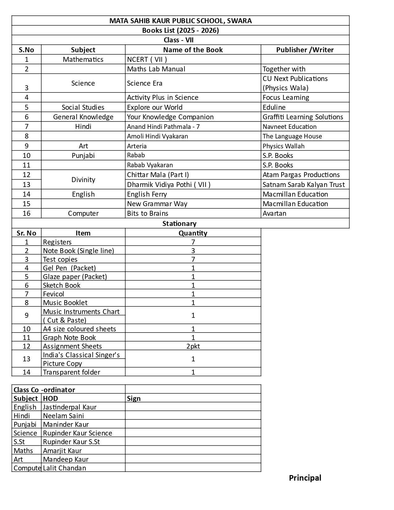 CLASS English Punjabi Hindi Mathematics Science Social Study Computers Art GK