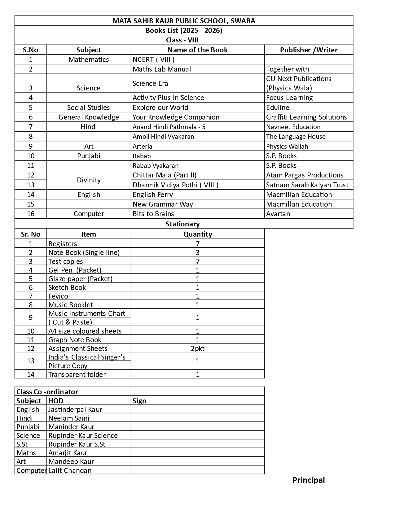 Anand Hindi Pathmala-8 - Navneet, Amoli Hindi Vyakaran - The Language House NCERT Future Kids Science 8 - Future Kids Explorer our world - EduLine Bits to Brains - Avartan Arteria -Physics Wallah Your Knowledge Companion - Graffiti Learning Solutions